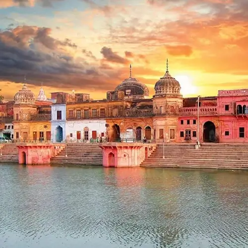 Return to the Saryu River to attend the evening aarti. The rituals and chanting during the aarti create a spiritually uplifting atmosphere as devotees gather to offer prayers to the river.